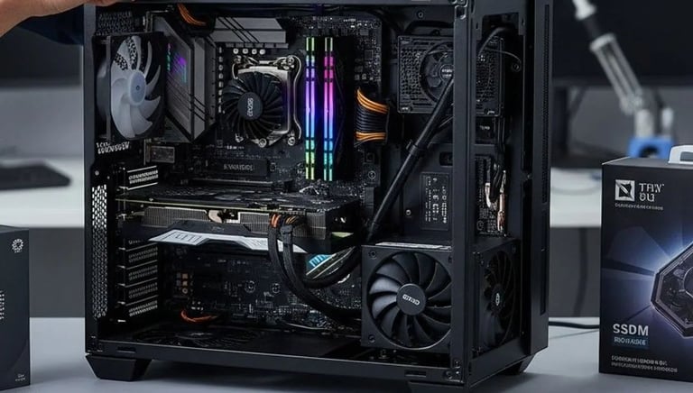 Substituição de HD, SSD, memória, fonte, placa-mãe e outros componentes, com testes completos e configuração final.